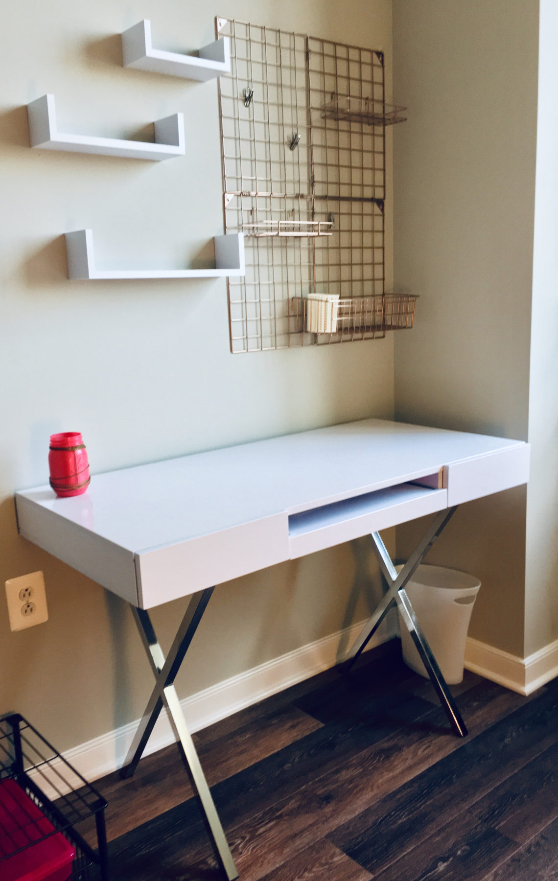 The wall piece was purchased. So I used spray paint to get the color of the one I really wanted to complete the look. And you can find many similar options on Amazon or with The Container Store with office accessories included. But do not forget that spray painting can be a great option to change it to your ideal color!